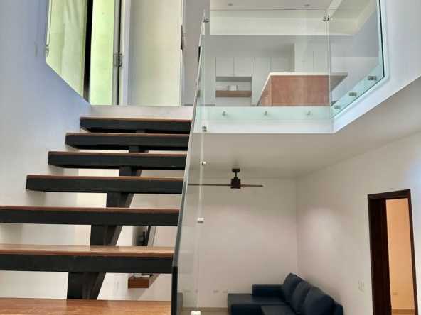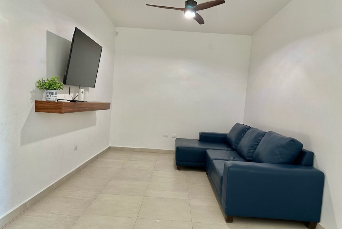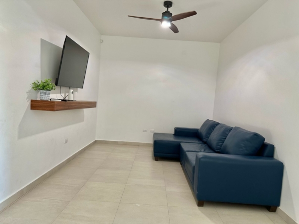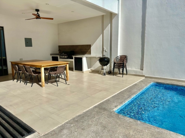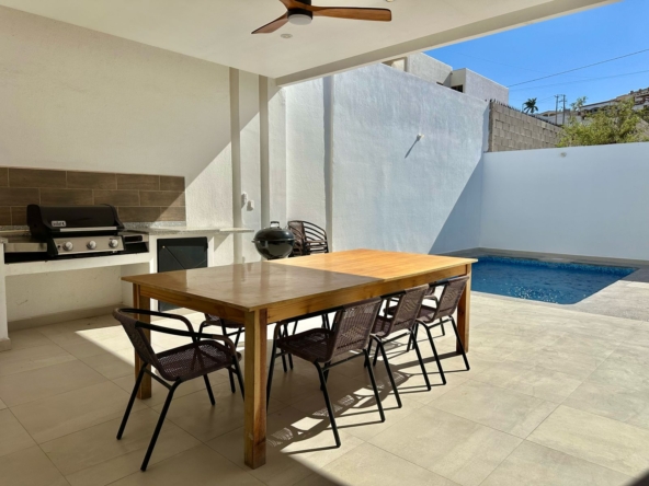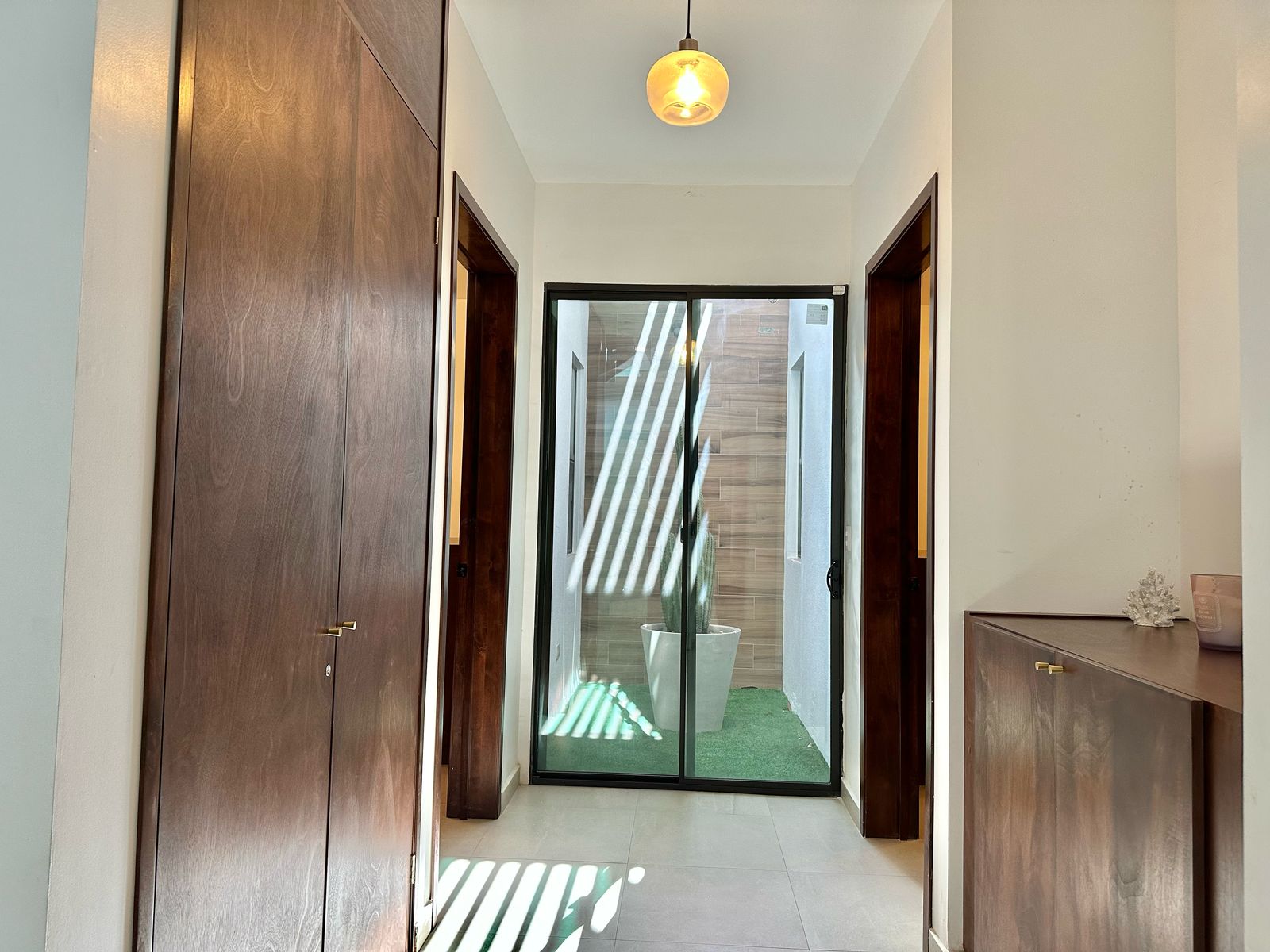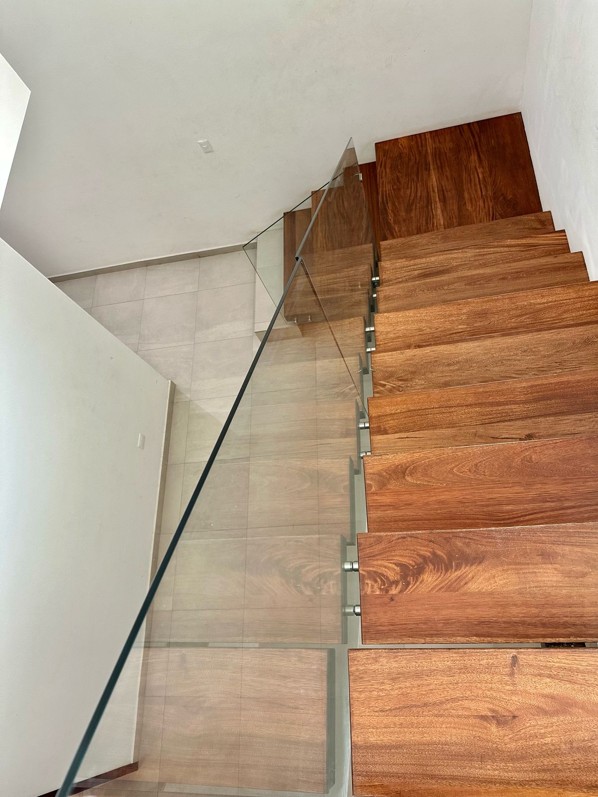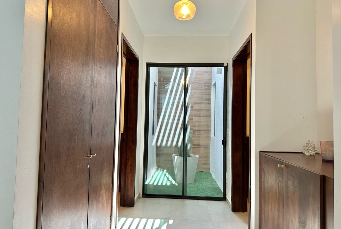 3 recamaras c/u con baño. Y estancia. Cochera techada para 2 autos.