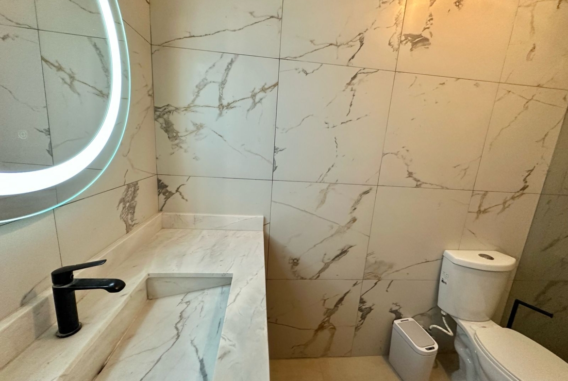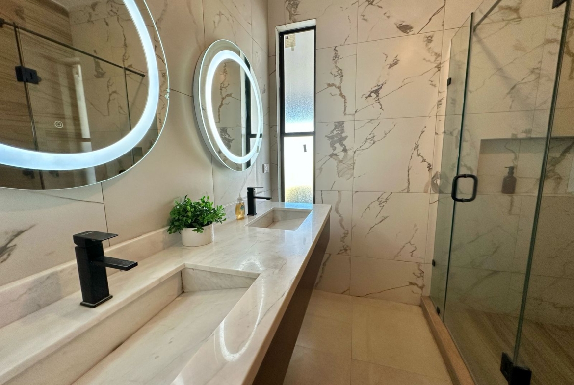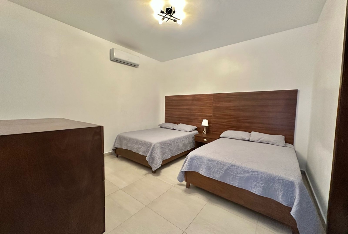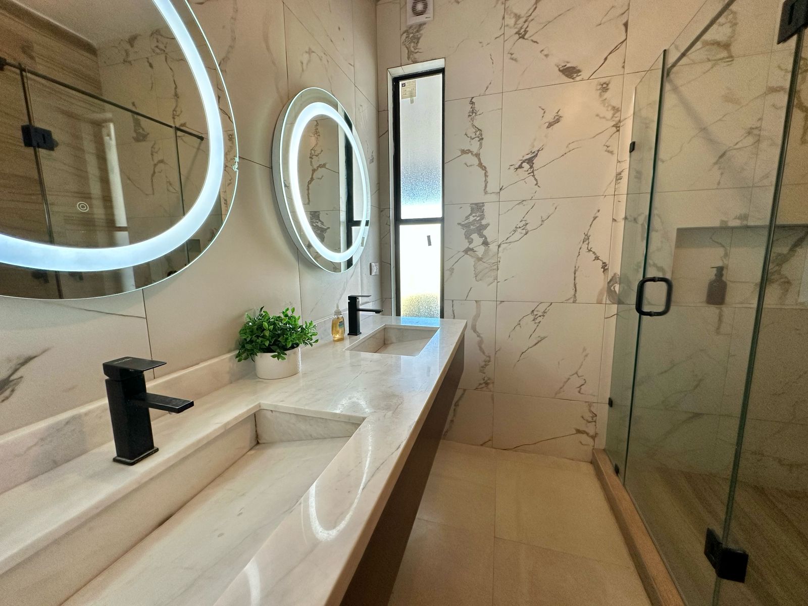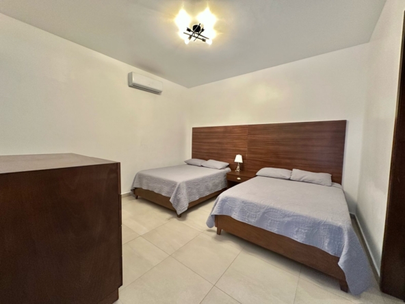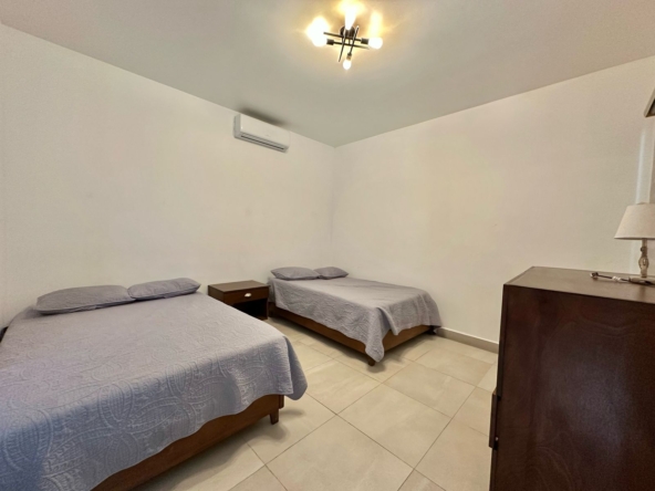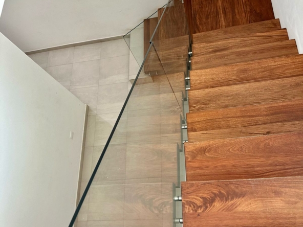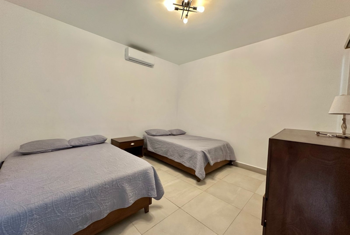 3 recamaras c/u con baño. Y estancia. Cochera techada para 2 autos.