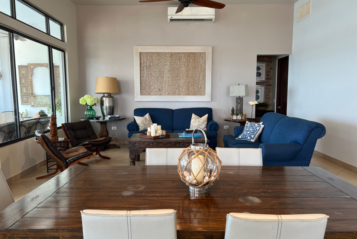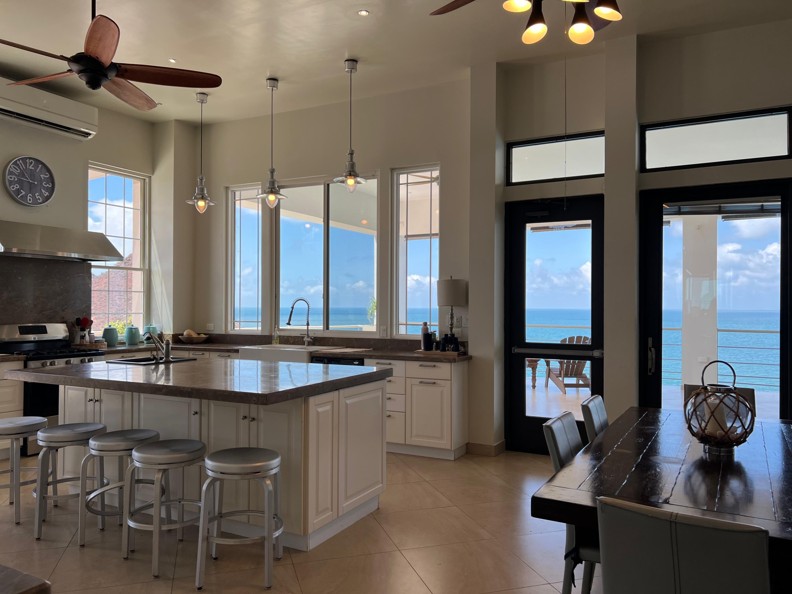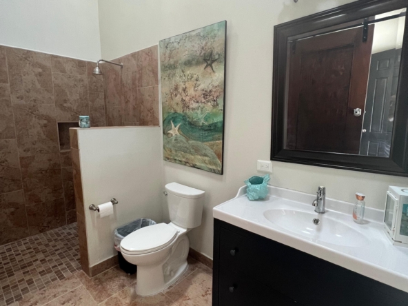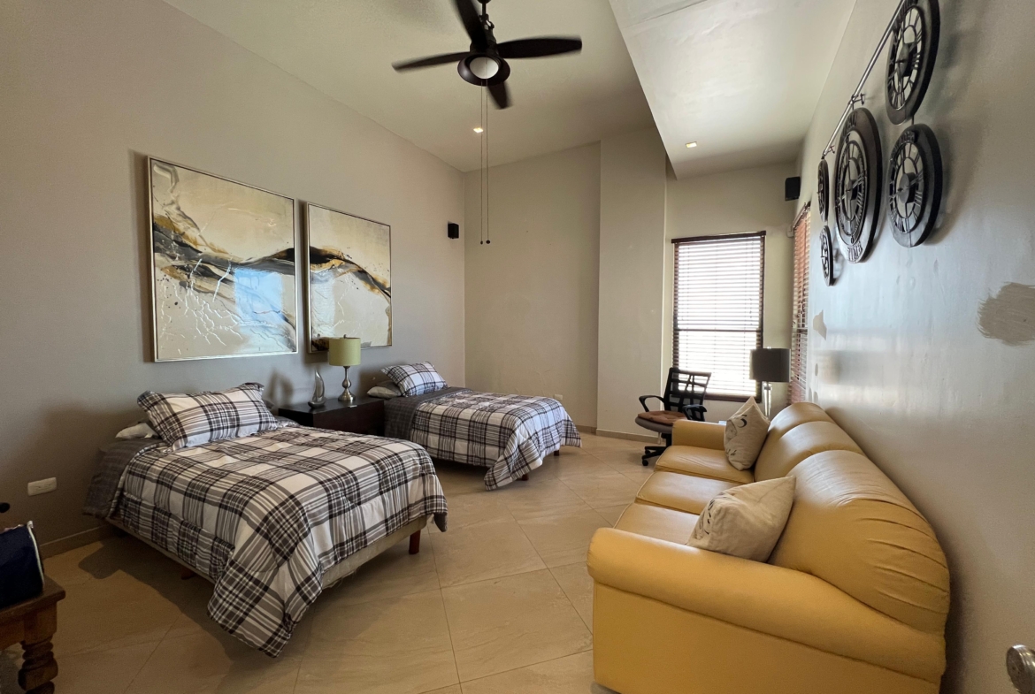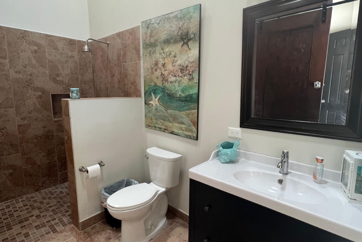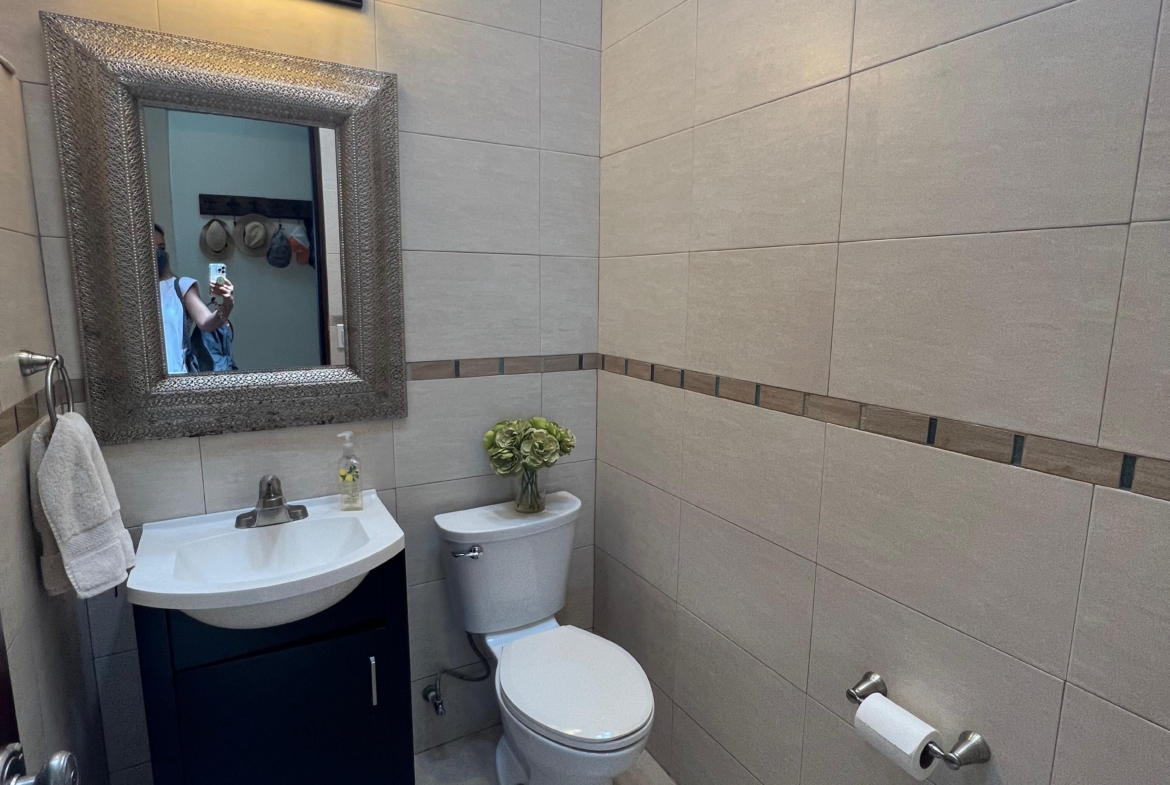 Medio baño, cuarto de visitas con baño completo, cuarto de lavado. Sala, comedor y cocina en open concept con preciosa vista al mar, 3 recamaras c/u con baño completo.