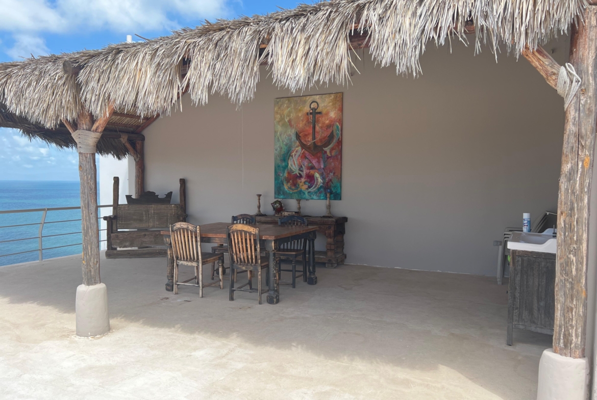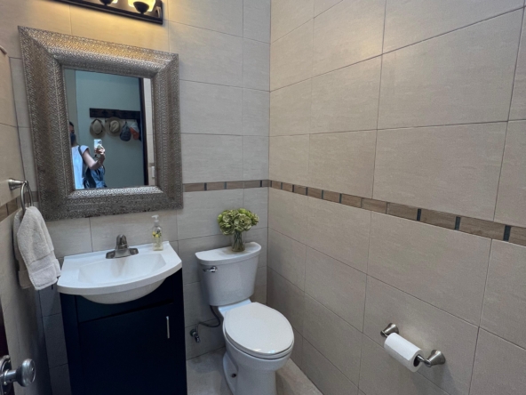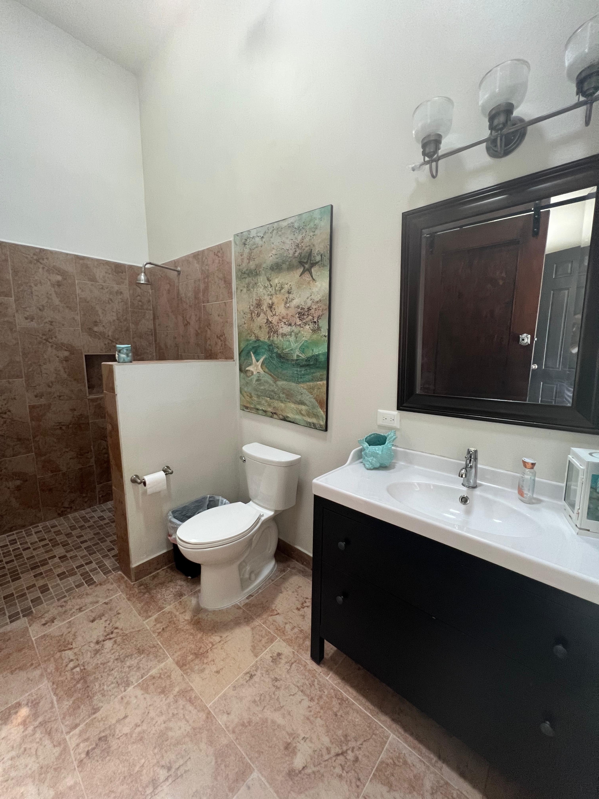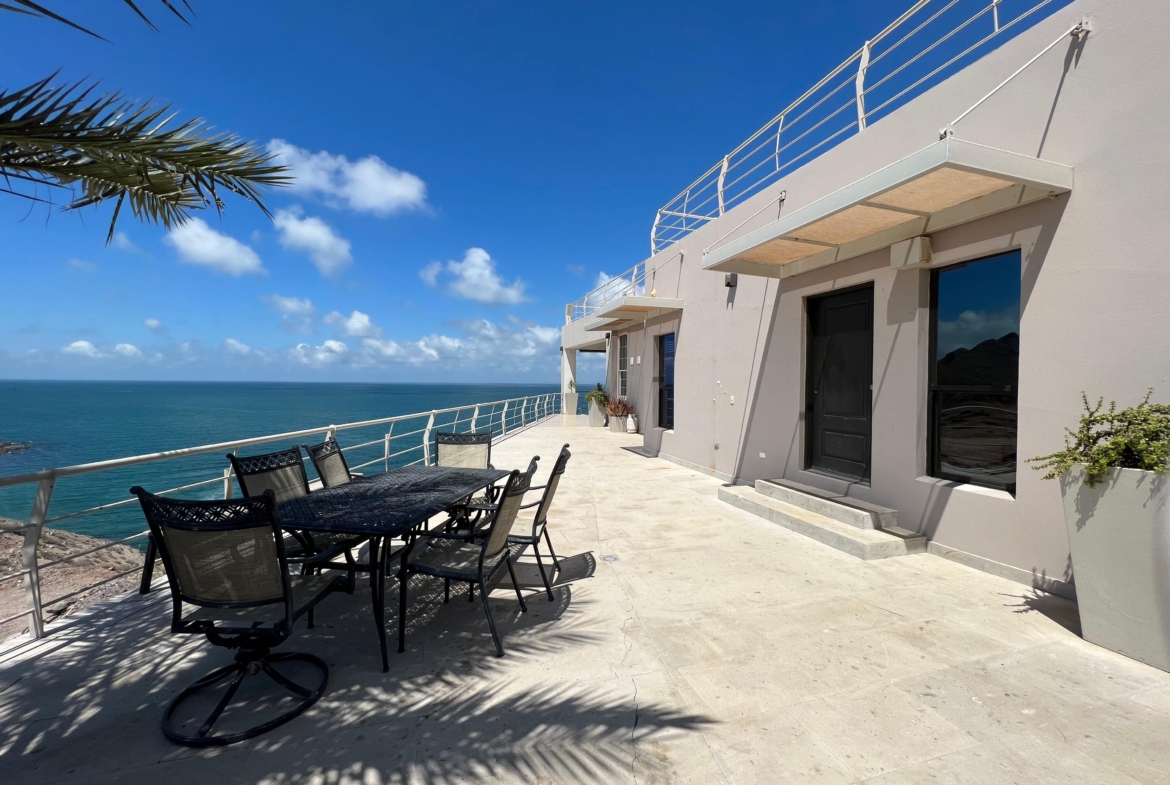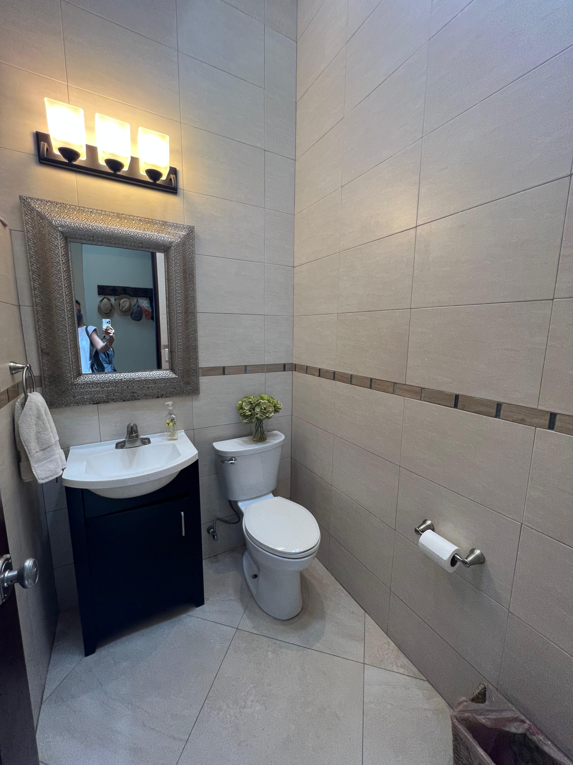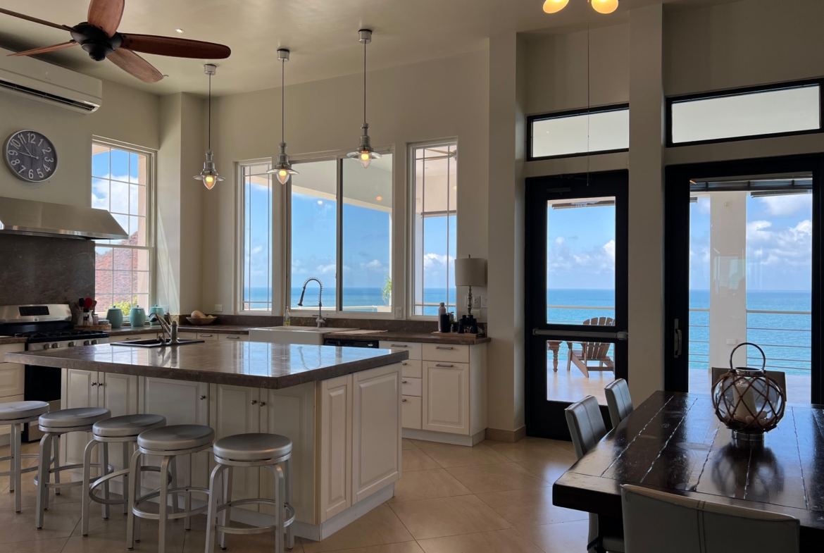 Medio baño, cuarto de visitas con baño completo, cuarto de lavado. Sala, comedor y cocina en open concept con preciosa vista al mar, 3 recamaras c/u con baño completo.