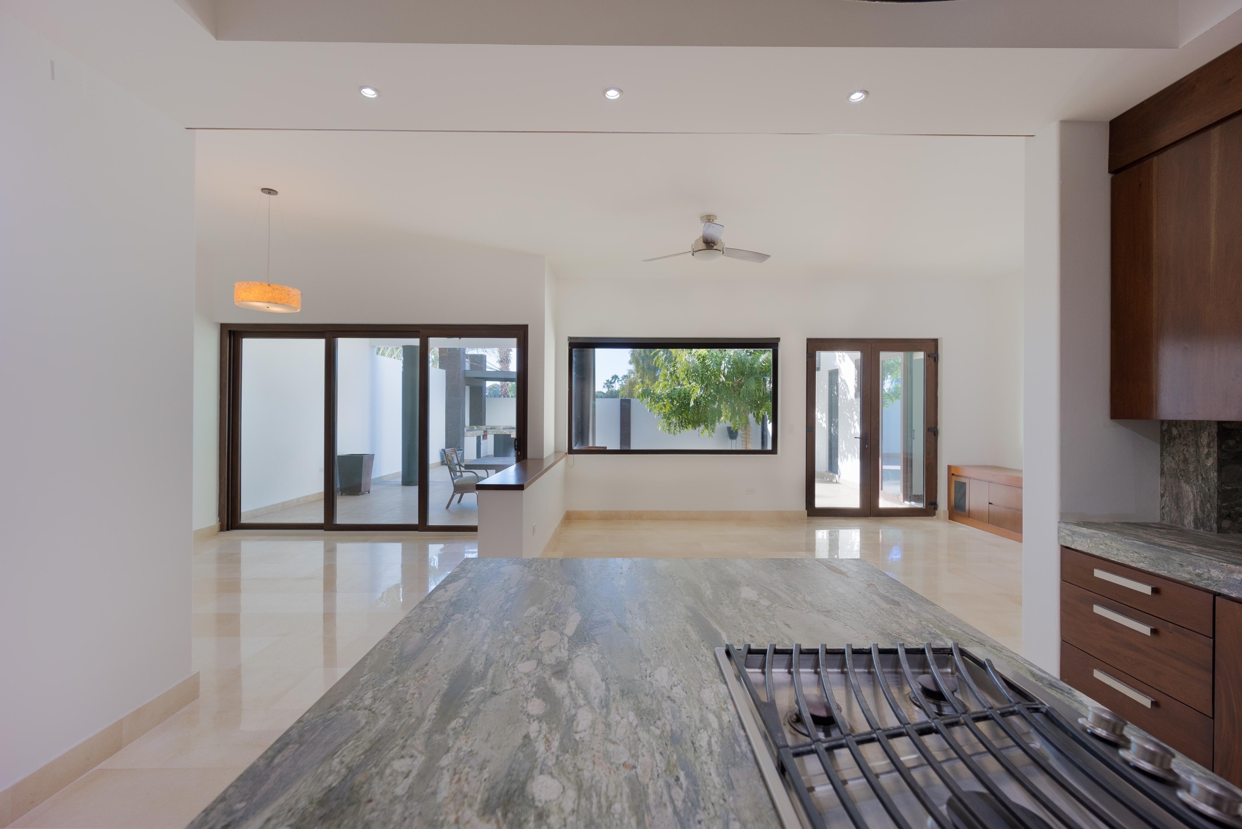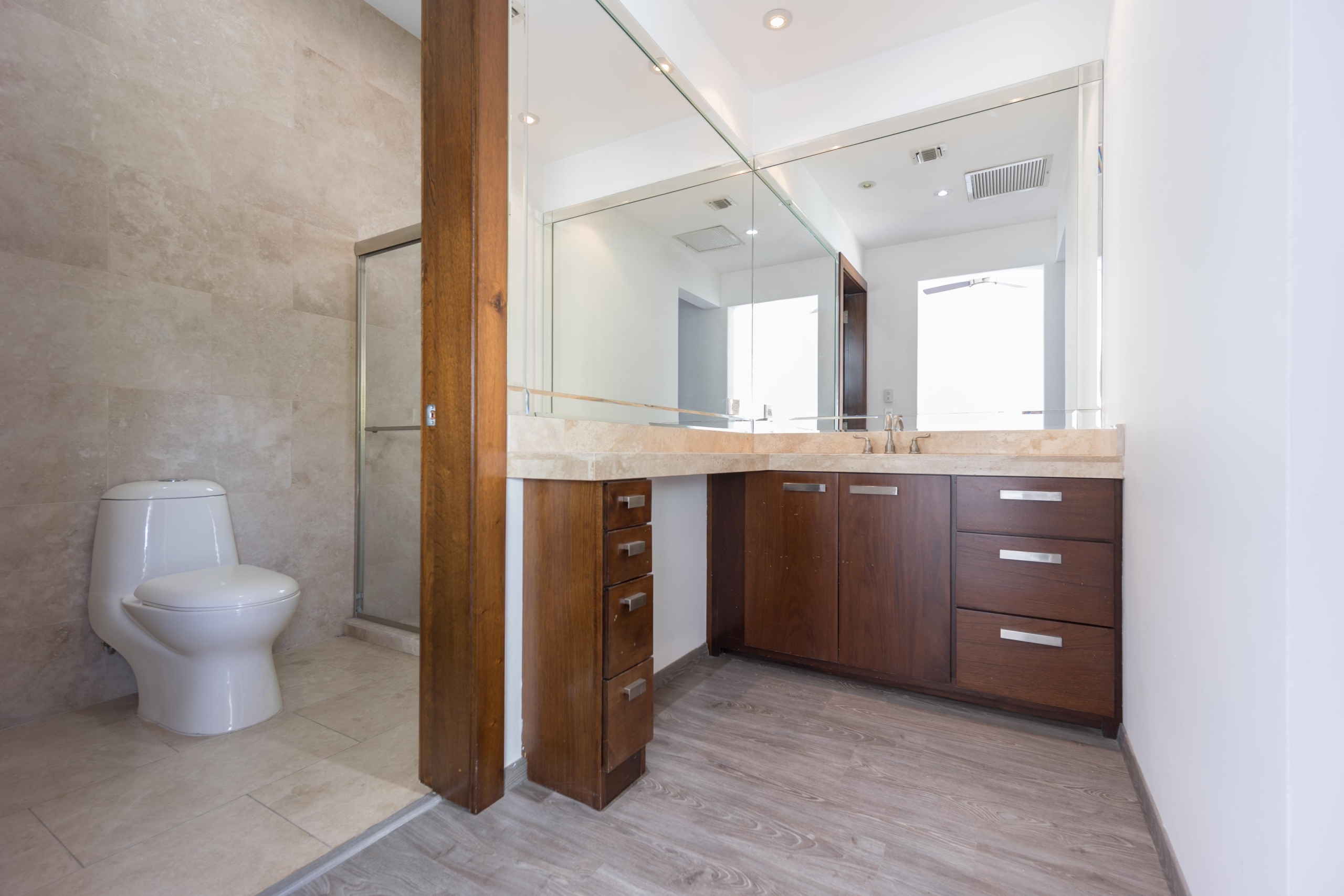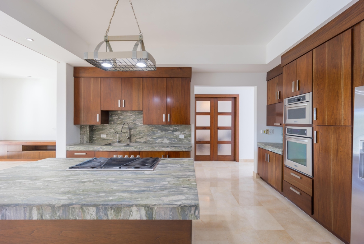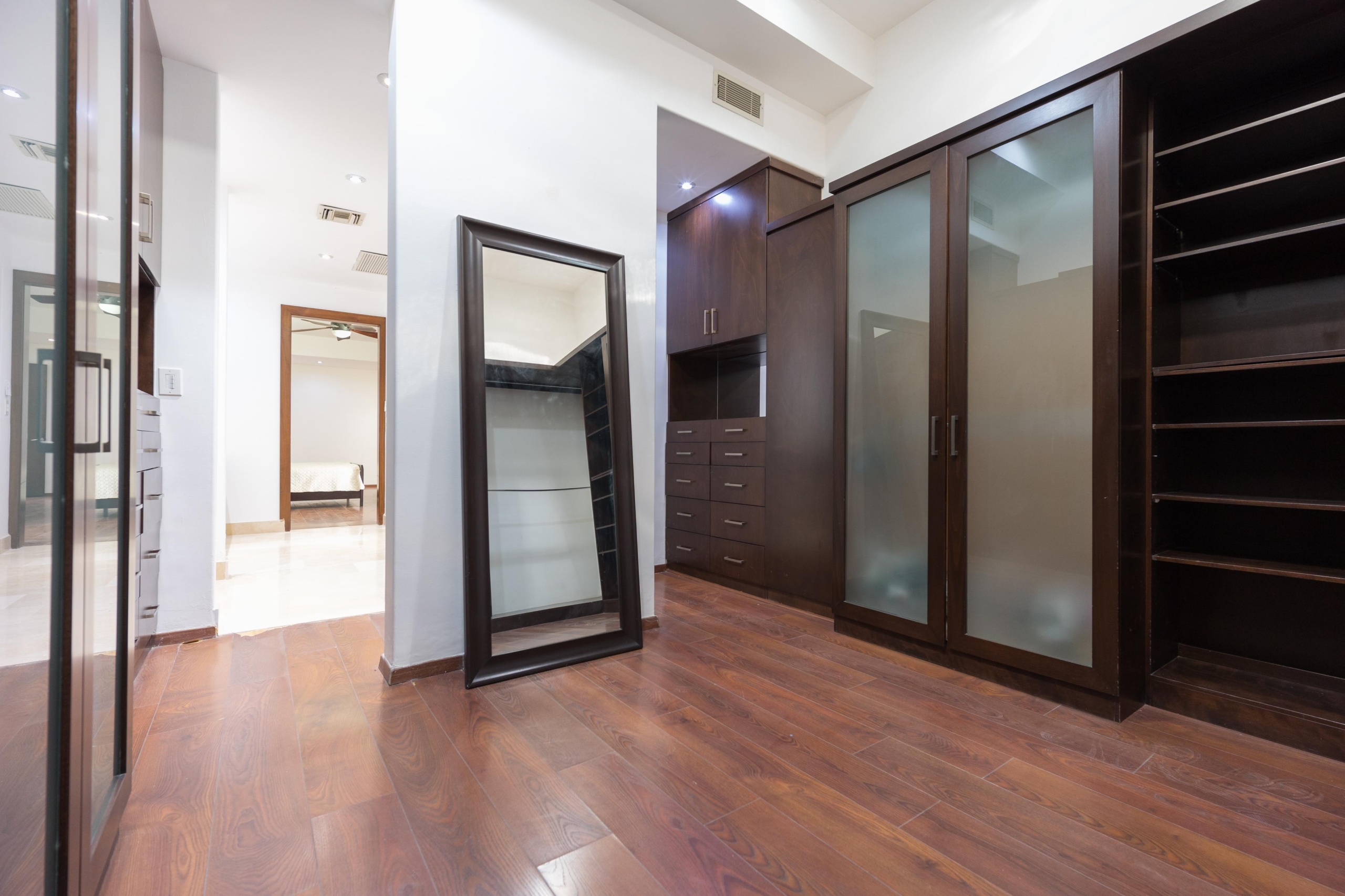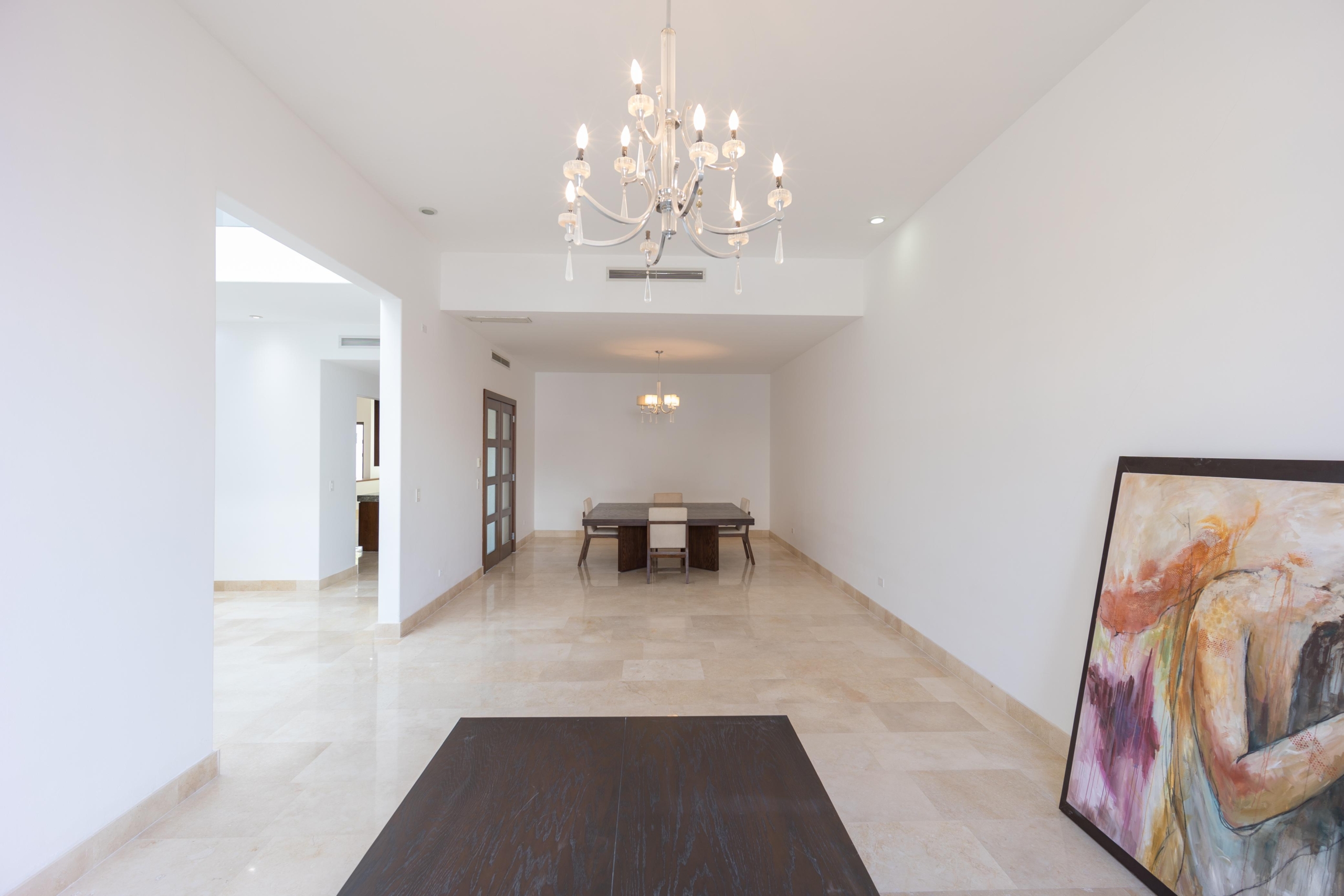 Piso de mármol crema marfil, y laminado en 4 recámaras, 3 vestidores, 2 closets de pared, 1 closet de blancos en planta alta, 8 abanicos de techo. Cocina de madera caoba, horno y microondas kitchen aid, refrigerador kenmore, estufa Viking, alacena. Persianas, boiler de gas, hidroneumático, tanque estacionario de 300Lts, herrería en terraza, cisterna 5,000Lts.