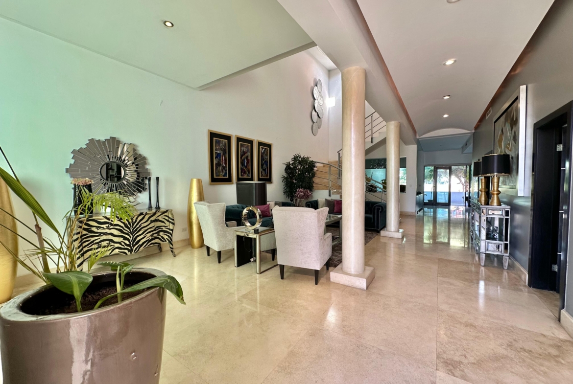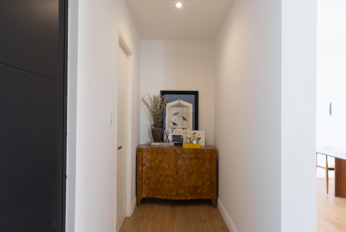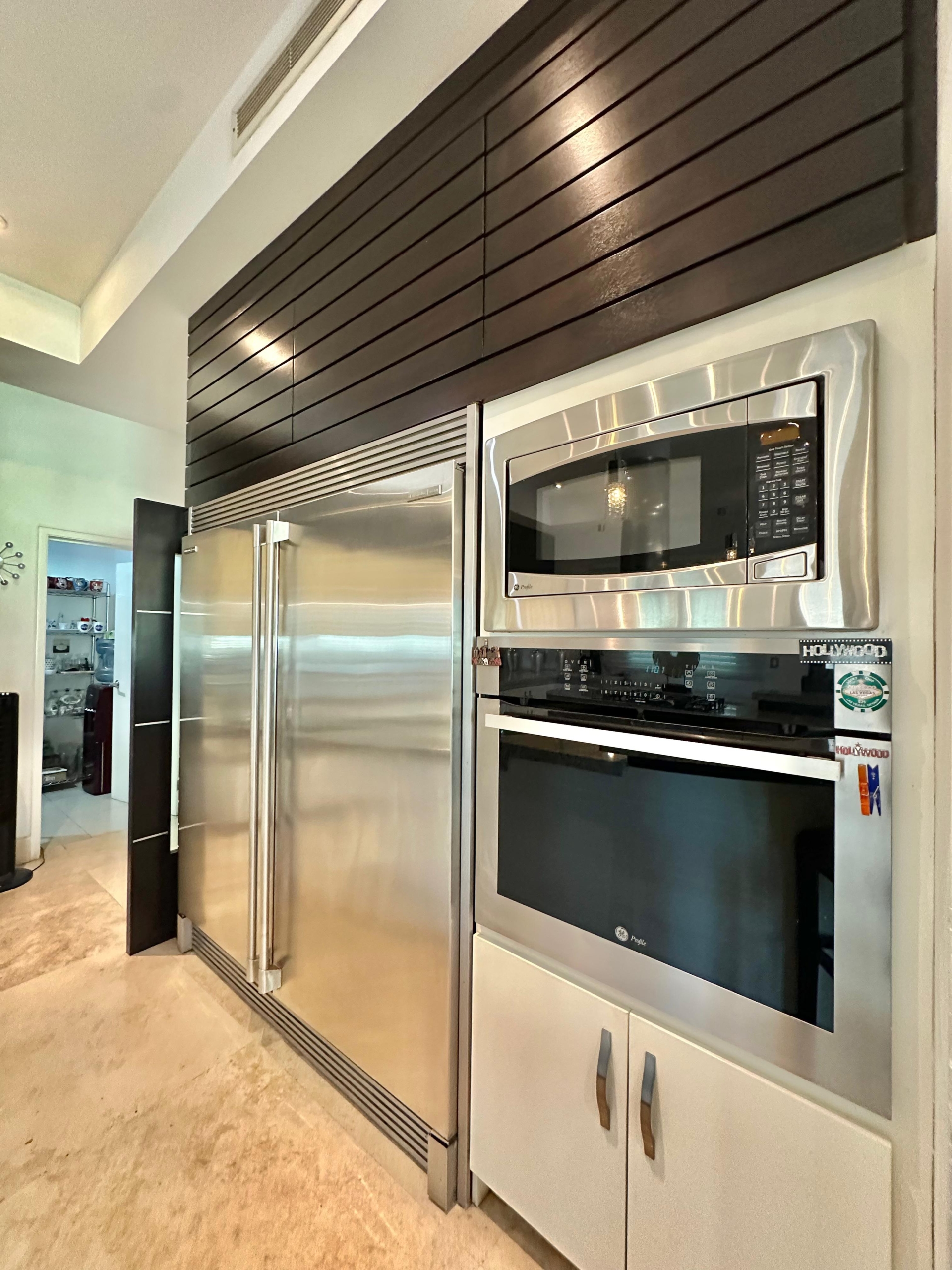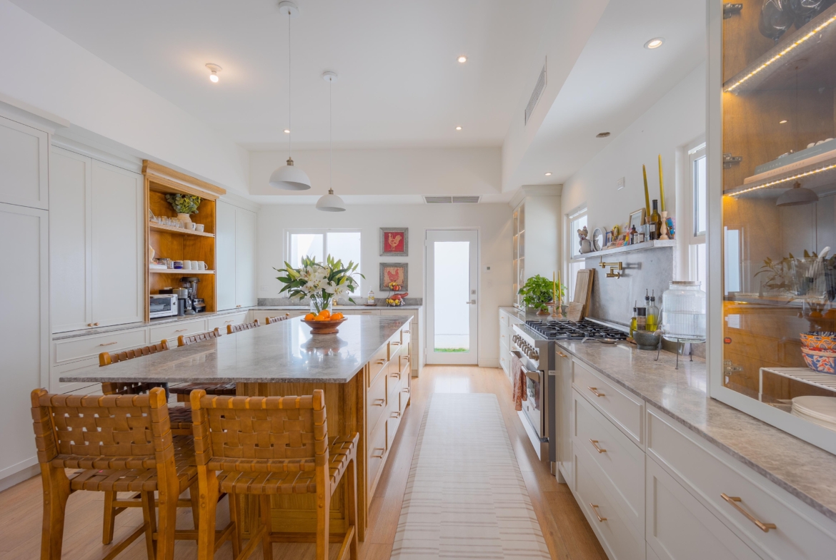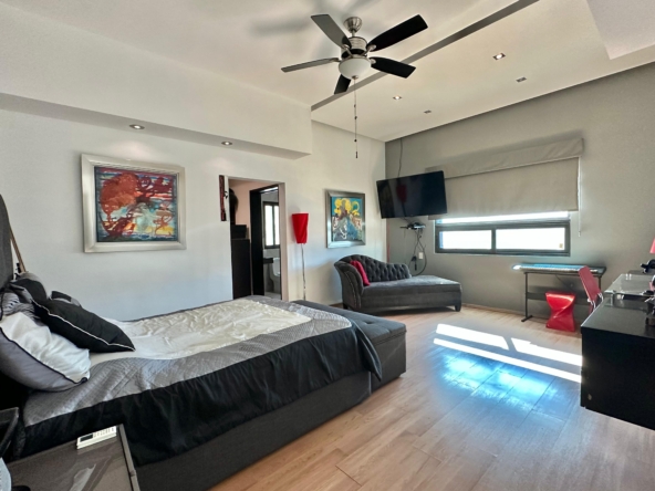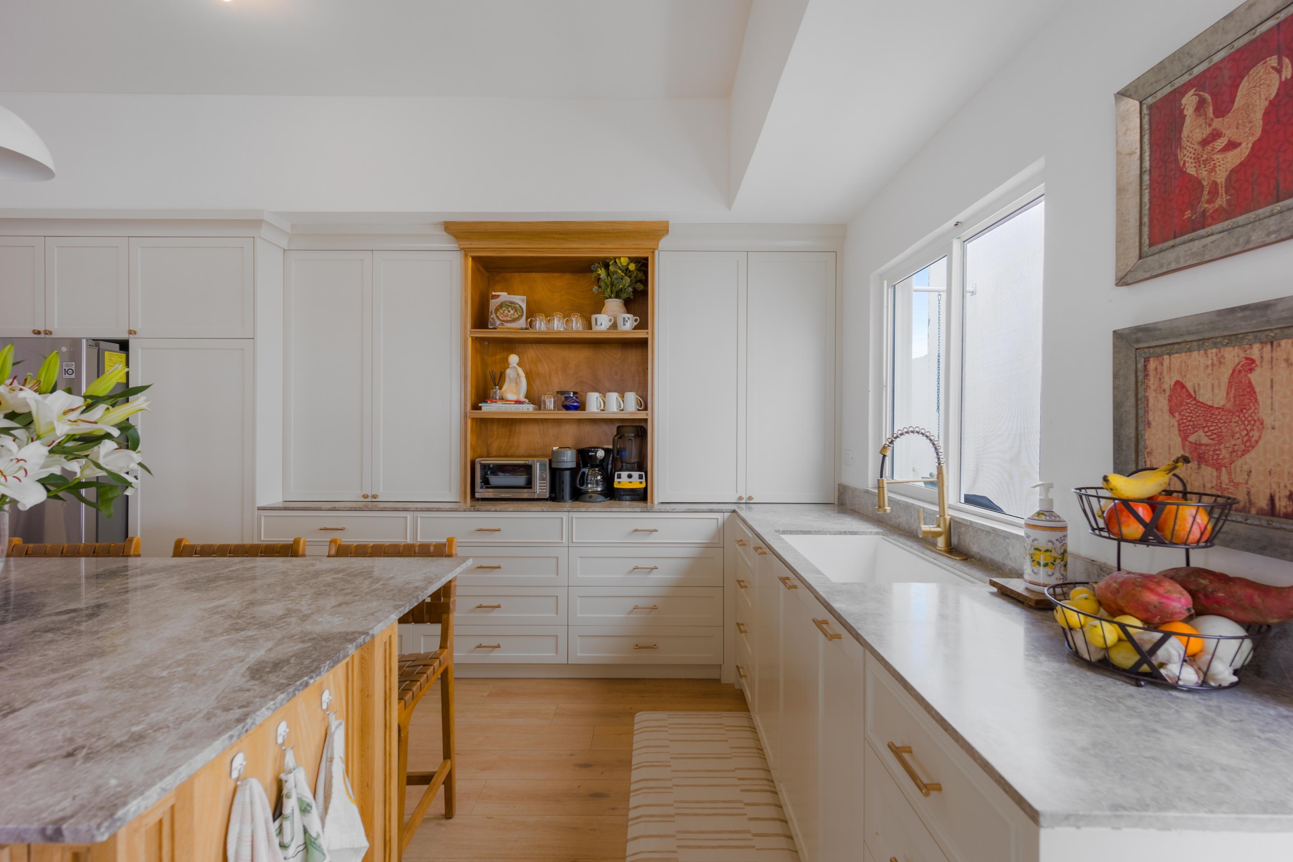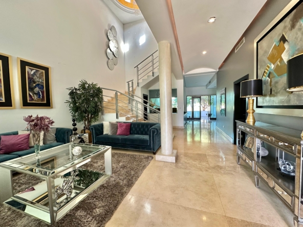 Cocina integral con estufa, campana, triturador, refrigerador, isla, granito, paneles solares, pisos laminados de madera rosa morada en todas las áreas, cristal templado en escaleras y balcón, 3 aires centrales (1 de 5t, 1 de 4t y 1 de 3t en rec ppal), espejos en baños, lámparas en cocina y sala, cortinas en todas las áreas, boiler, cisterna con hidroneumático h tanque estacionario de gas.