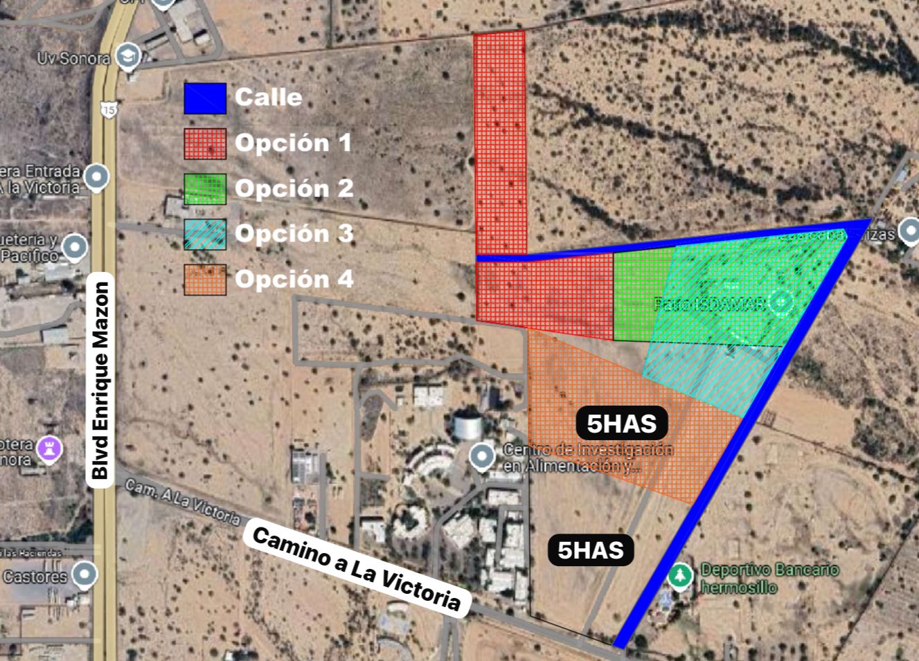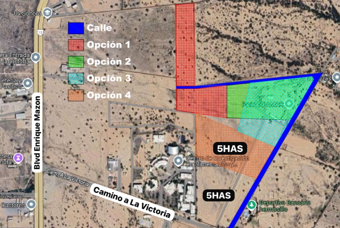 Superficie: 100,000 m2 (10has)Uso de suelo: mixtoA un costado del CIAD.A unos mts del Blvd Enrique Mazon.